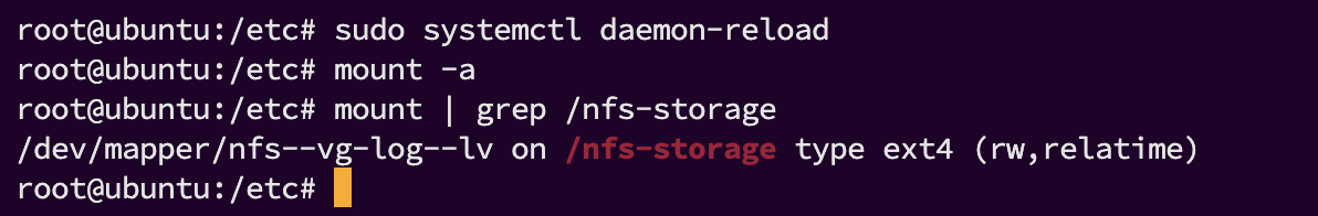 sudo mount 10.0.8.3:/nfs-storage /logs- ✔️