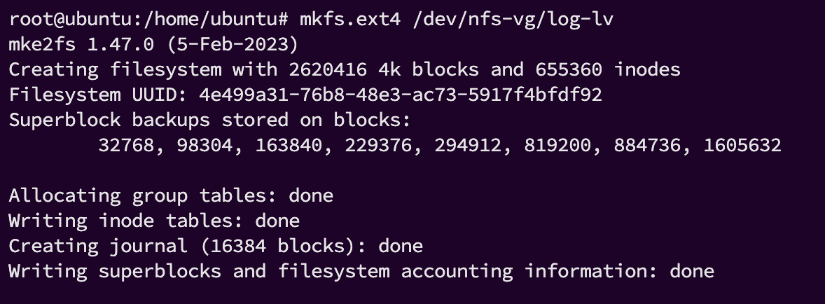 mkfs 명령어를 사용하여 해당 볼륨을 포맷한다
