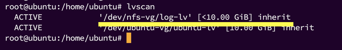 lvscan을 통해 생성된 로지컬 볼륨 확인