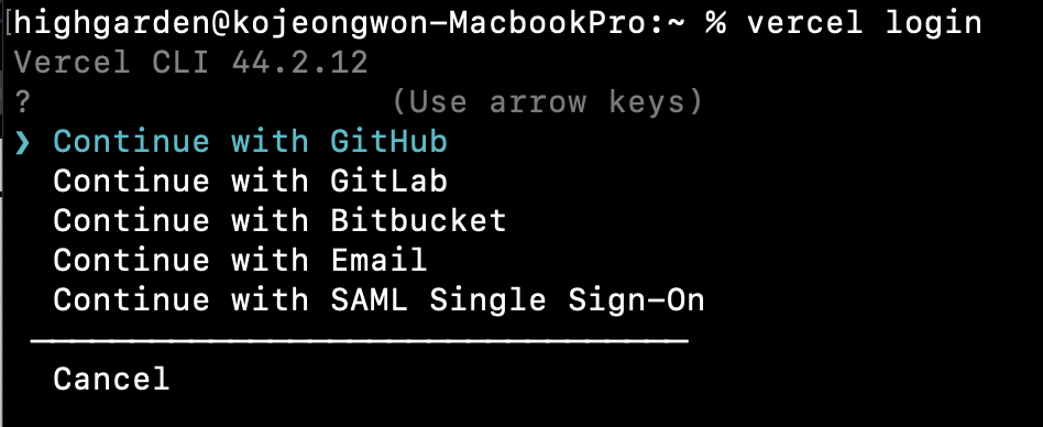 vercel login # 이메일 인증링크 클릭