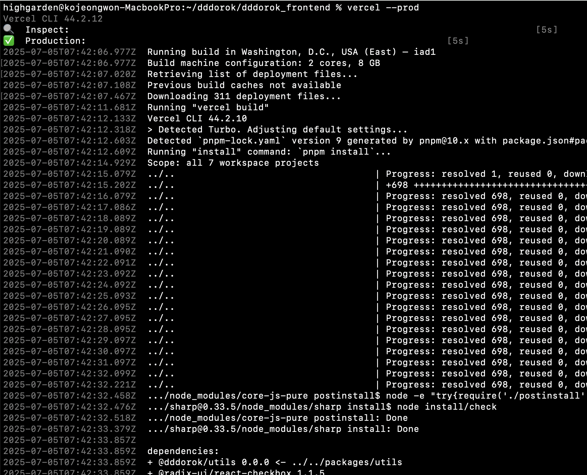 2. 온갖cwd·상대/절대경로 삽질 cd apps/web,vercel build --cwd …,vercel deploy ./apps/web등 시도- 결과는 apps/web/apps/web 같은 이중 중첩 & 정적 파일 404 파티 🤯
